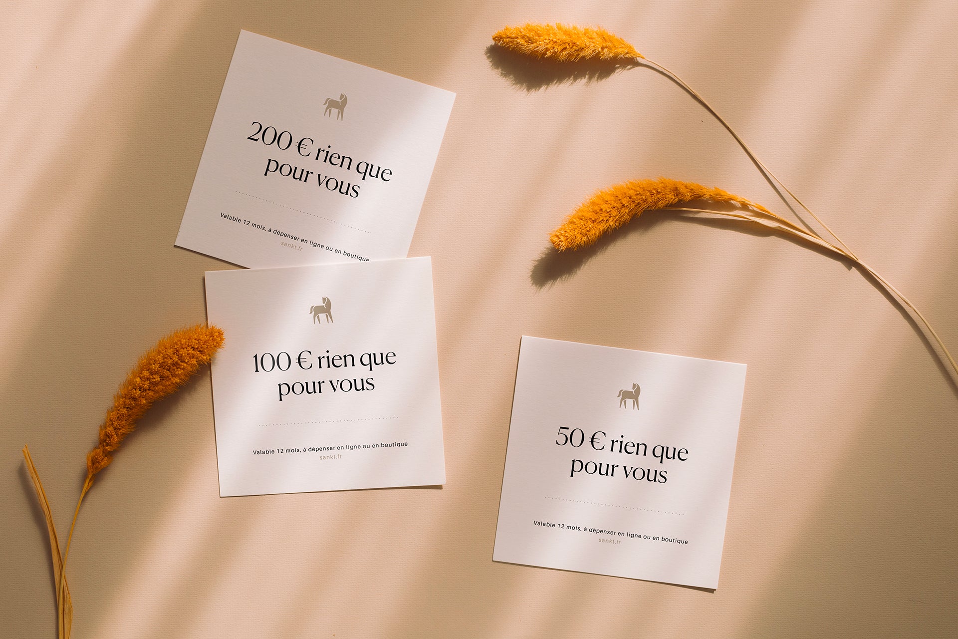 La carte cadeau Sankt est utilisable sur notre site et dans notre boutique d’Autun.